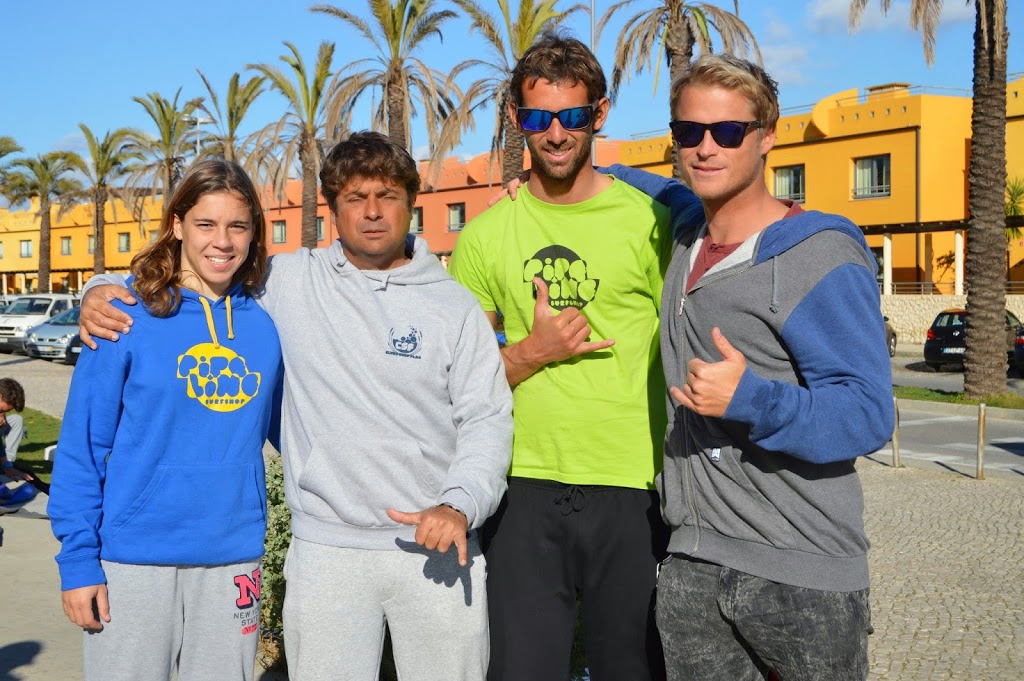 Marlon (à direita) com Necas (de cinzento) e os atletas Inês Martins e Luís Esteves, do Clube de Surf de Faro